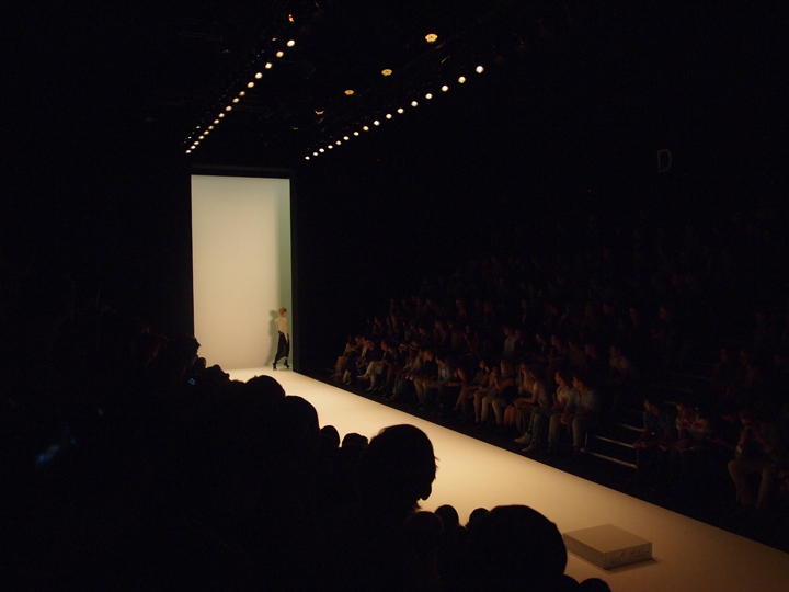 patrick mohr's runway show of his spring/summer 2012 collection was so exciting, it actually gave me goosebumps. it wasn't like the others shows we saw at all: the models did not rush over the runway in high heels but wore rubber socks and moved pretty slow and stiff while hard electronic music was played. patrick mohr used many natural materials, even his bags, which were worn as simple back packs, were made of cotton and linen. regarding the colors, you could sight earthy browns, beiges and pastel shades besides basic hues like white, grey and black. furthermore all of the clothes presented appered really comfortable, the cuts had a loose fit and reminded me of streetwear and casual sports clothes.